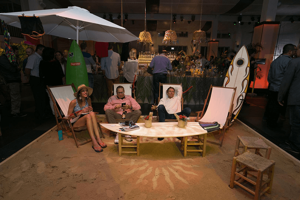 Brand Worlds Celebration”: six concept-driven spaces representing SPEEDO, LACOSTE, GUNS and more—each featuring a signature dish, cocktail, custom playlist, a top-tier cover band, and interactive brand activations including a private beach setup and a professional football freestyler